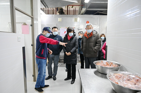 刘雅红先后对绿榕园食堂、莘园食堂、芷园食堂、荷园食堂、稻香园食堂、西园食堂、幼儿园食堂及西点屋等进行实地查看,深入各食堂的操作间,仔细查看食堂的环境卫生、仓库储存、现场操作、工用具分类使用、食品售卖及留样、“阳光厨房”监控视频和消防器材使用等情况,重点检查了食堂员工健康检查记录、场所消毒记录以及餐具消毒等情况,特别是食堂为学生返校后就餐所做的系列疫情防控工作。