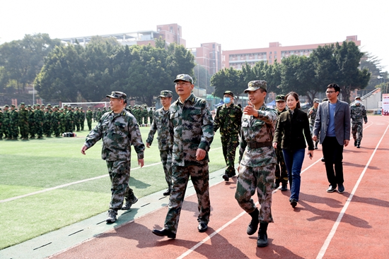 近日,我校2021级本科新生第二阶段军事技能训练正如火如荼开展中。2月27日,学校军训师师长、副校长杨运东到各大军训场看望慰问军训新生和带训教官。