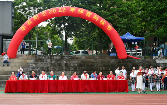 在华农附小,王斌伟参加了附小2022年“同台炫技”体育科技节活动开幕式,观看了各班入场表演,了解“科技文化小摊”展示情况,并听取附小的工作汇报。王斌伟对附小办学成果表示认可,并强调附小要进一步加强对学生身心健康的关心爱护,重视综合素质的培养,促进小朋友们德智体美劳全面发展。