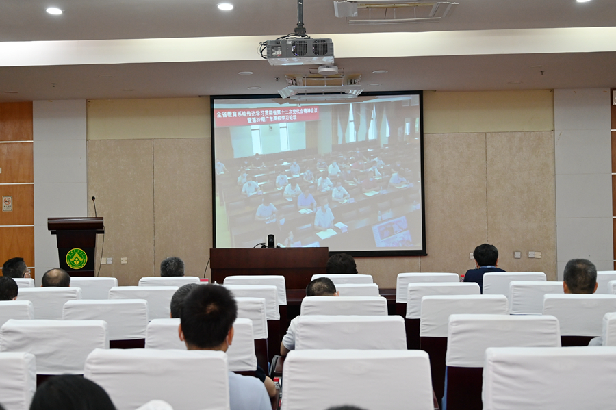 为深入学习宣传贯彻省第十三次党代会精神,切实把广大党员干部和师生的思想统一到党代会精神上来,5月31日,省委教育工委召开全省教育系统传达学习贯彻省第十三次党代会精神会议暨第39期广东高校学习论坛。省教育厅副厅长朱超华主持会议并传达学习省第十三次党代会和省委十三届一次全会精神;省教育厅党组书记朱孔军部署全省学习宣传贯彻工作。论坛主会场设在省教育厅,我校在行政楼三楼报告厅设分会场。