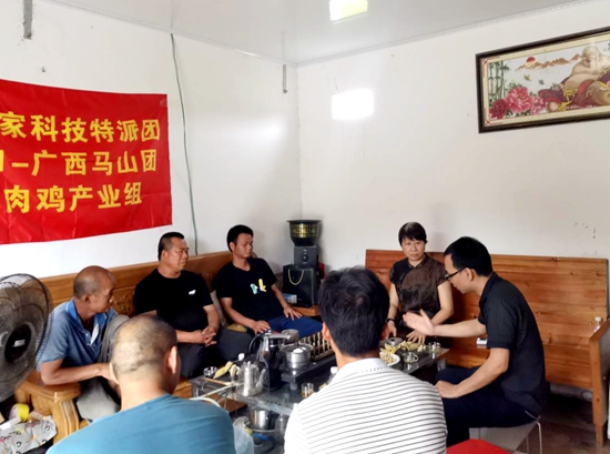 在林圩镇黄番村那林屯养鸡基地同产业负责人座谈交流