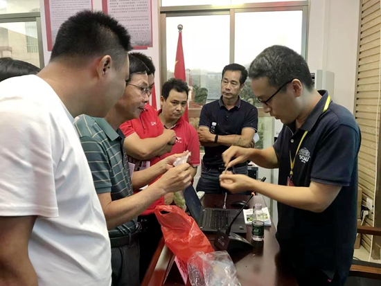 专家团一行先后到北中村沉香基地和田墩村油柑基地,通过实地查看、与种植户及村干部面对面交谈沟通的方式,就沉香和油柑的种植、病虫害防治、产品加工、开发及产业园建设等方面进行了深入探讨,对产业发展过程中存在的问题、面临的困难以及农民在生产中遇到的实际难题进行“诊治”,并提出了具有专业性和针对性的意见和建议。