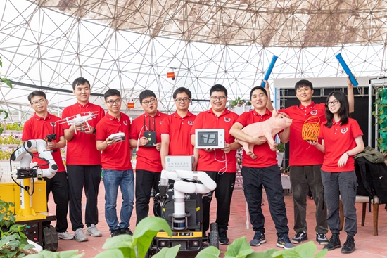 “95后”学生团队在华南农业大学首个乡村振兴小院的“智慧小院”中展示智慧农业部分成果。