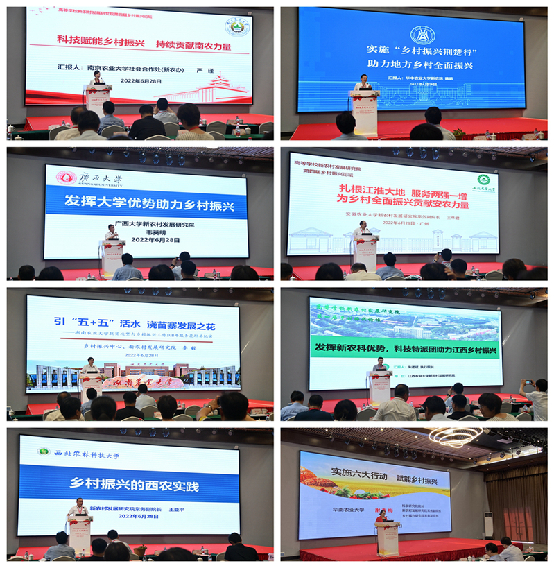 在高校交流会环节,南京农业大学、华中农业大学、西北农林科技大学、安徽农业大学、湖南农业大学、江西农业大学、广西大学、华南农业大学等高校,通过大量生动详实的案例,就科技赋能乡村振兴、服务地方产业发展、乡村振兴人才培养、科技特派员队伍建设、校地校企融合发展等主题进行分享,共同探索高校支撑乡村振兴战略新样板、新模式、新路径,为实现巩固拓展脱贫攻坚成果同乡村振兴有效衔接、高质量助推乡村振兴发展贡献“高校方案”和“高校智慧”。