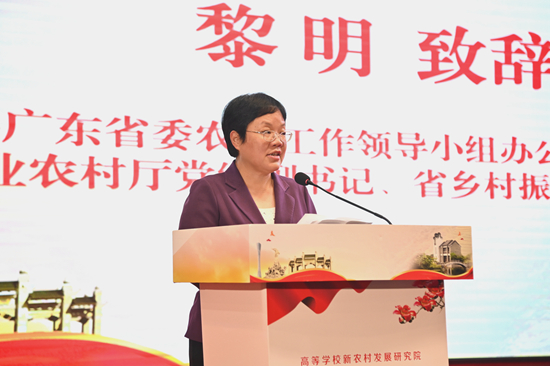 “在新征程上全面推进乡村振兴的重要节点,在广东召开这次乡村振兴论坛,可以说恰逢其时。”中共广东省委农村工作领导小组办公室常务副主任、省农业农村厅党组副书记、省乡村振兴局常务副局长黎明简要介绍了广东的乡村振兴情况。她表示,本次论坛内容丰富,含金量高,希望借此机会,高等学校新农村发展研究院协同创新战略联盟能把全国各地乡村振兴的好做法带到广东,为广东全面推进乡村振兴建言献策,支招把脉;希望联盟能充分发挥学科特色优势,聚焦国家粮食安全等重大战略需求,对广东乡村振兴工作给予更多支持;希望联盟把广东的创新做法与兄弟省份、大学生和合作企业进行分享,推荐更多优秀大学生来广东创业,推荐更多优秀创新型合作企业来广东发展。