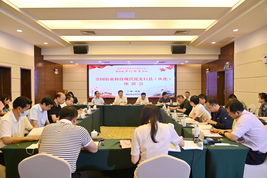 在全国农业科技现代化先行县(从化)座谈会上,我校副校长仇荣亮围绕强化顶层设计、共建科教平台、科技创新驱动、建设新型智库等方面介绍我校科技支撑先行县建设情况。广东省农业农村厅科技教育处处长刘亚平介绍了我省科技现代化先行县共建工作情况与经验。从化区副区长涂家朝围绕从化先行县建设经验、存在问题及下一步工作计划等方面介绍了从化区先行县创建工作情况。浙江大学、西北农林科技大学、南京农业大学、华中农业大学、安徽农业大学、湖南农业大学、河南农业大学等高校代表交流分享先行县帮扶建设具体举措、取得成绩及面临问题,并总结经验。