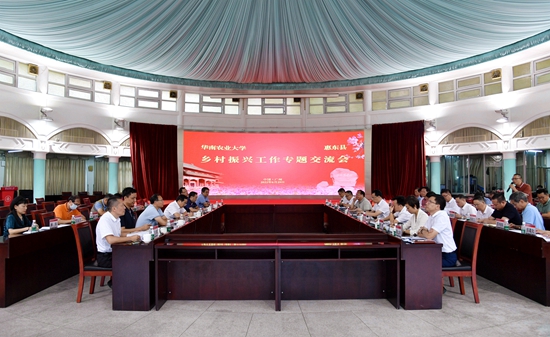 为认真贯彻落实省委、省政府关于领导干部深入基层定点联系涉农县(市、区)工作安排,我校高度重视、主动对接,成立了定点联系工作领导小组,校党委书记、乡村振兴研究院院长王斌伟多次率队赴惠东县开展专题调研,研究制订工作方案并强化经费、人才和技术保障,推动惠东县乡村振兴工作取得初步成效。6月29日下午,惠东县委书记郭武飘带队回访我校,王斌伟接待了来宾,双方在红满堂召开乡村振兴工作专题交流会。校党委副书记邓国安参加会议。