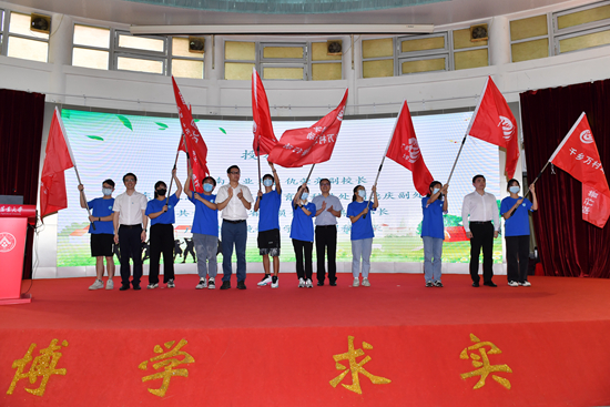 仪式上,省生态环境厅、团省委、省环境科学学会及我校参会嘉宾为各高校“大学生在行动”队伍代表授旗。