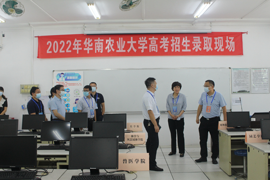 王斌伟、刘雅红一行还察看了本科招生录取现场,实地了解录取场地的卫生防疫和后勤保障情况等。