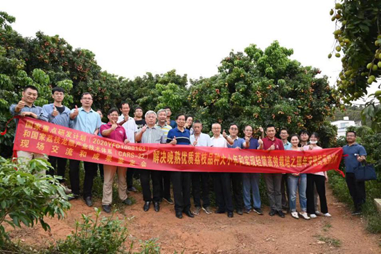 由我校园艺学院、国家荔枝龙眼产业技术体系荔枝栽培岗位科学家李建国研究员实施国家重点研发计划“荔枝枇杷优质轻简高效栽培技术集成与示范”课题的荔枝示范园,自2018年实施“隔年交替结果新技术”以来,已连续五年迎来丰收景象。鉴定委员会一致认为隔年交替结果技术模式,是解决优质荔枝大小年结果问题和实现优质轻简高效栽培的创新技术,居同类研究国际领先水平,并建议要进一步加大该技术推广力度。