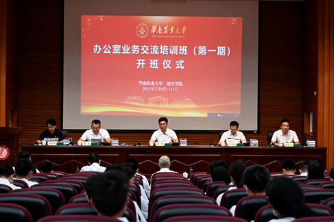 7月9日至11日,华南农业大学办公室系统业务交流培训(第一期)在韶关学院举办。学校各机关部处、学院、教辅、科研、附属单位办公室主任、综合科长、行政科室主要负责人及韶关学院各部门综合科长、二级学院办公室主任参加培训。校党委常委、副校长钟强,韶关学院党委委员、副校长吴善添,校对口帮扶韶关学院工作队队长陈志远等出席开班仪式。校党政办公室主任吴斌主持开班仪式。