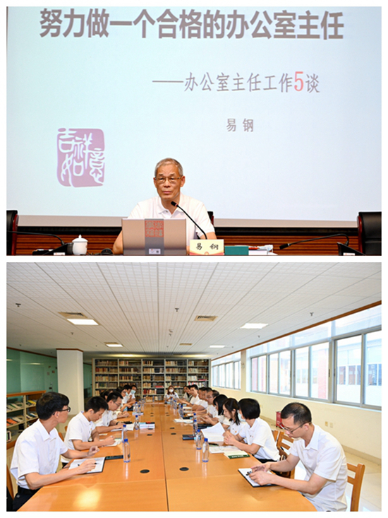 在培训会上,学校原党委办公室主任、广东白云学院原党委副书记易钢研究员结合自身工作经历为学员们作了题为《努力做一个合格的办公室主任——办公室主任工作5谈》专题辅导报告。报告内容丰富,具有较强的指导意义,赢得了学员们的阵阵掌声。