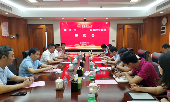王斌伟对陈恩才一行表示欢迎,并向廉江市一直以来对我校乡村振兴研究院廉江分院工作的支持表示感谢。他指出,乡村振兴研究院廉江分院的建立是一个良好的探索,校企双方可以依托分院开展很多切实有效的合作。双方要不断加强沟通,找准切入点,立足廉江产业优势,为廉江乡村全面发展提供全口径、全方位、全链条服务,不断为廉江全面实施乡村振兴战略贡献华农智慧和华农力量。