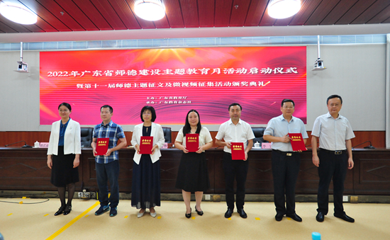 8月26日上午,广东省2022年师德建设主题教育月活动启动仪式暨第十一届师德主题征文及微视频征集活动颁奖典礼在省教育厅主会场举行。我校党委副书记邓国安出席主会场典礼并代表学校领取了“优秀组织奖”。工程学院党委书记施娜柯作为高校(本科)微视频组一等奖的获奖单位代表在会上发言,马克思主义学院练庆伟副教授作为高校(本科)征文组一等奖的获奖教师代表上台接受表彰。学校师德建设委员会各成员单位负责人、各二级单位负责人、其他获奖教师代表在我校分会场参加活动。