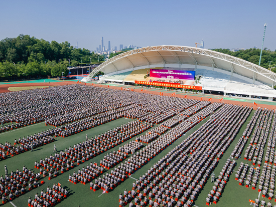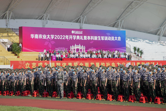 9月3日上午,华南农业大学2022年开学典礼暨本科新生军训动员大会在泰山区运动场举行,1.3万余名同学在华农扬帆起航,开启人生的新征程。