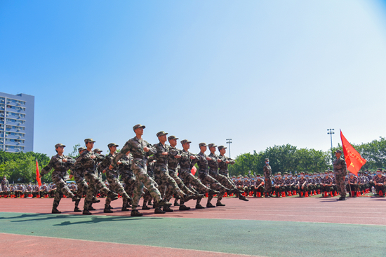军训师第二团团长、数学与信息学院、软件学院中队教官姚奇波同学代表军训教官团宣誓:“请学校党委放心,请全体师生放心,我们有信心、有决心、有能力高质量完成本次训练任务!”