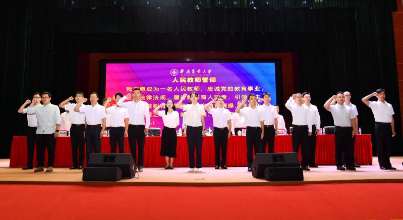 “我志愿成为一名人民教师,忠诚党的教育事业……”新入职教职工代表一同宣读人民教师誓词,嘹亮的誓言铿锵有力,更加坚定了老师们坚守教育初心,勇担育人使命的决心。
