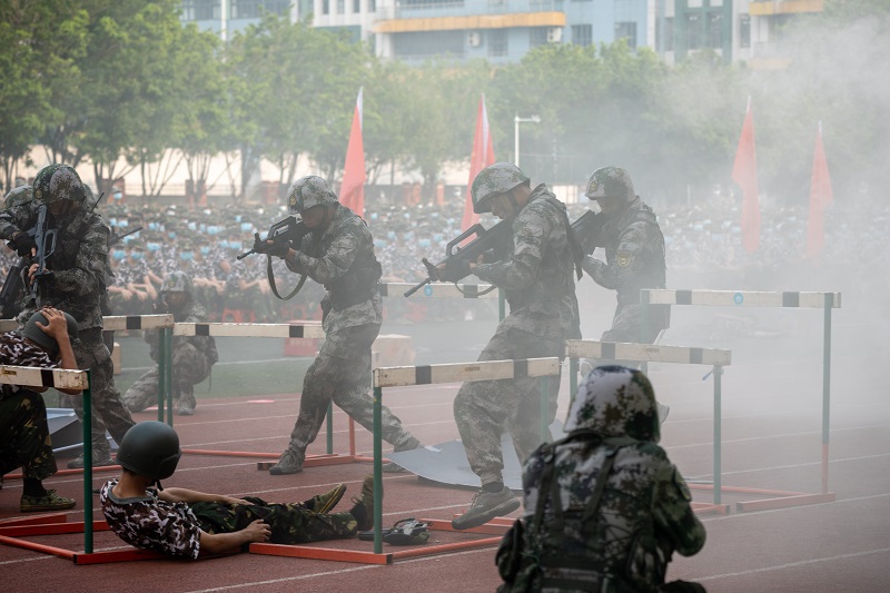 大会在雄壮的中国人民解放军军歌中圆满结束。今年是学校近年来第一次进行夏季“一段式”军训,训练内容包括共同条令与国防意识教育、校园安全教育、基础军事技能训练、轻武器射击及战术训练、战备基础与应用训练、内务卫生、消防演练、军歌演唱等。军训期间,军训师始终绷紧疫情防控和健康安全“两根弦”,采取“统筹安排、灵活组训”的组织形式,圆满完成军训任务,达到训练预期目的,取得了较好的成绩。