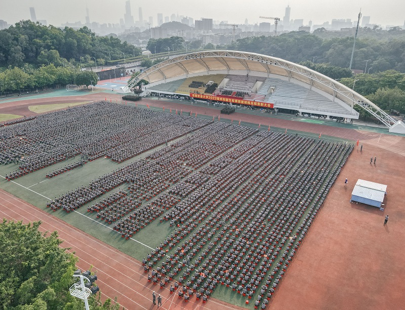 学校各职能部门负责人,各学院党委书记、副书记,本科新生辅导员、承训学生教官、全体参训学生参加了大会。