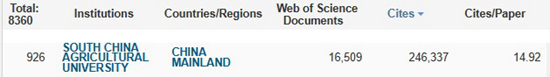本期全球共8360家机构有ESI学科进入前1%。我校在全球机构中总排名为926位,比上一期(939位)上升13位(图2)。本期我校ESI学科共涉及16509篇论文(SCI、SSCI论文),被引总次数为246337次,篇均被引次数为14.92次(比上一期提高0.76次),高水平论文数250篇(比上一期增加18篇)。