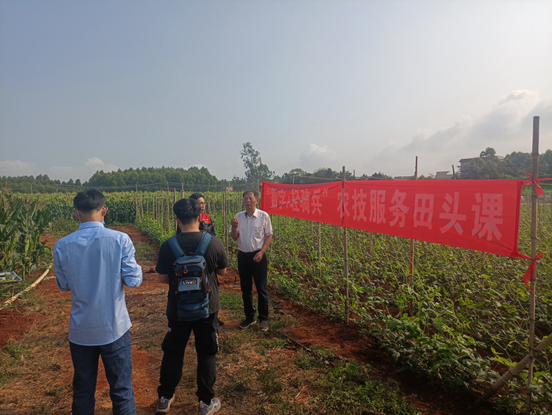 徐汉虹教授现场演示了精准施药技术,介绍了其理论基础和研究过程。督导组对滴灌施药技术在豇豆上应用取得的成效给予了高度的评价,表示要在全国豇豆生产上进行推广和应用。督导组认为,该技术解决了豇豆安全生产的卡脖子问题。同时,有近50万农技人员和种植户通过广东农技轻骑兵田间课堂,在线学习了这一广东省主推技术。
