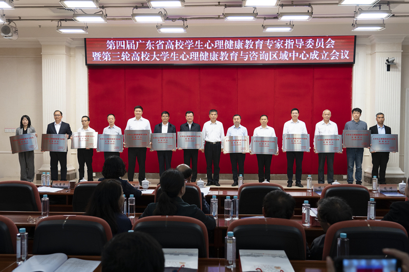 近日,由省教育厅举办的第四届广东省高校学生心理健康教育专家指导委员会暨第三轮高校大学生心理健康教育与咨询区域中心成立会议在南方医科大学召开。省委教育工委副书记,省教育厅党组副书记李大胜出席会议并讲话,为第四届广东省高校学生心理健康教育专家指导委员会成员、第三轮高校大学生心理健康教育与咨询区域中心颁发聘书、授牌。我校党委副书记邓国安参加会议并代表学校接受授牌。