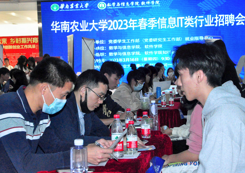近日,华南农业大学2023年春季信息IT类行业招聘会在泰山区创客空间一楼路演大厅举行。本次招聘会由我校党委学生工作部(党委研究生工作部)主办,数学与信息学院、软件学院承办。