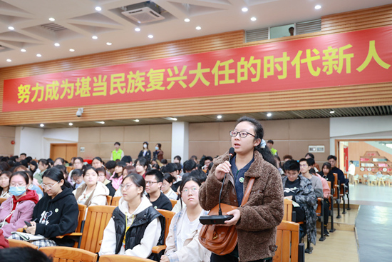 “人生最美好的事就是奋斗书写奇迹”“道路千万条,勤奋第一条”“十年奋斗科学梦,赢得广东劳模名”……报告内容丰富扎实、语言风趣幽默,各式金句频出,现场掌声、笑声不断。报告结束后,陈乐天与同学们进行了深入交流,并现场回答了同学们关切的问题。