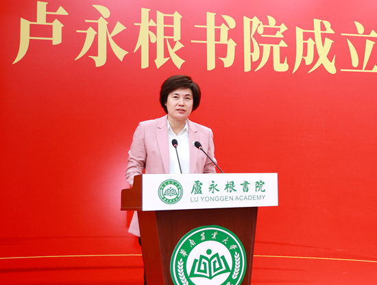 “三代院士,两脚泥巴,体现了胸怀‘国之大者’、扎根农业、报效祖国、奉献传承的宝贵精神!成立卢永根书院,是华农探索创新一流人才培养模式的重要举措,也是加快培养一流人才的时代答卷,具有很好的引领作用和导向意义。”吴华明代表省教育厅向卢永根书院的成立表示祝贺,并对书院建设提出三点要求:一是培根铸魂,推动“三全育人”与“五育并举”深度融合;二是强化优势互补,建立书院与专业院系协同联动机制;三是承袭中国古代书院的优良传统,构建导师学生共同体。她表示,华农在人才培养方面一直是广东的一面旗帜,希望学校继续贯彻落实党的二十大精神,领会习近平总书记关于“双一流”建设的重要指示批示精神,深化人才培养改革创新,取得更多佳绩。