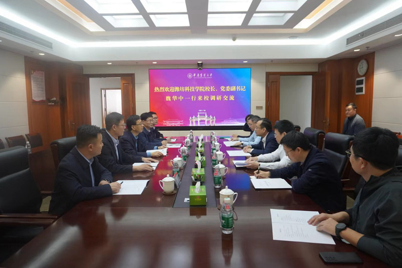 4月11日上午,潍坊科技学院魏华中校长一行来校交流。校党委常委、副校长邓诣群在行政楼7楼中会议室接待来宾并召开座谈会。