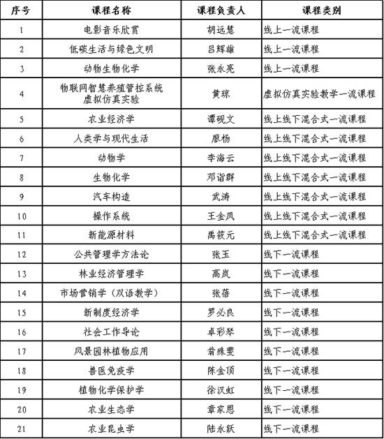 近日,教育部发布的第二批国家级一流本科课程认定结果公示已完成,我校共有21门课程获得认定,认定数量位居全国农林高校第二位,广东省高校第六位.