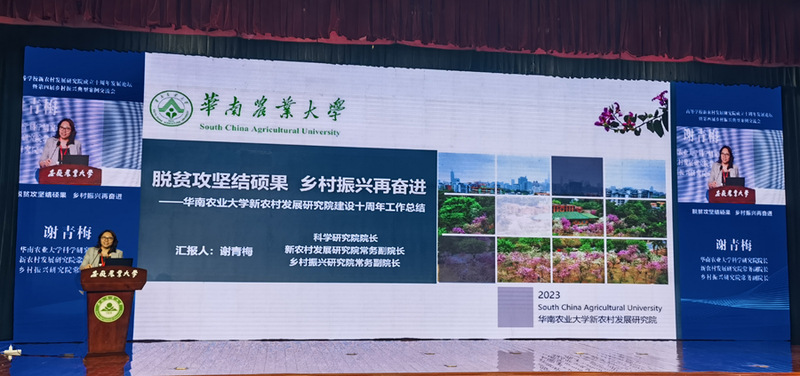 会上,科学研究院(新农村发展研究院)负责人以“脱贫攻坚结硕果 乡村振兴再奋进”为主题汇报了学校新农村发展研究院十年来建设发展、定点帮扶及服务乡村振兴等方面工作情况。十年来,我校新农村发展研究院不断推进农业科技创新与推广服务,积极探索以高校为依托、农科教相结合的综合服务模式,切实提升服务广东经济社会发展的能力和水平,在科研创新、社会服务和定点帮扶等方面取得了显著成效,曾获“广东省脱贫攻坚先进集体”“广东省乡村振兴先进集体”“全国产学研合作创新奖”“国际减贫典型案例”等荣誉。