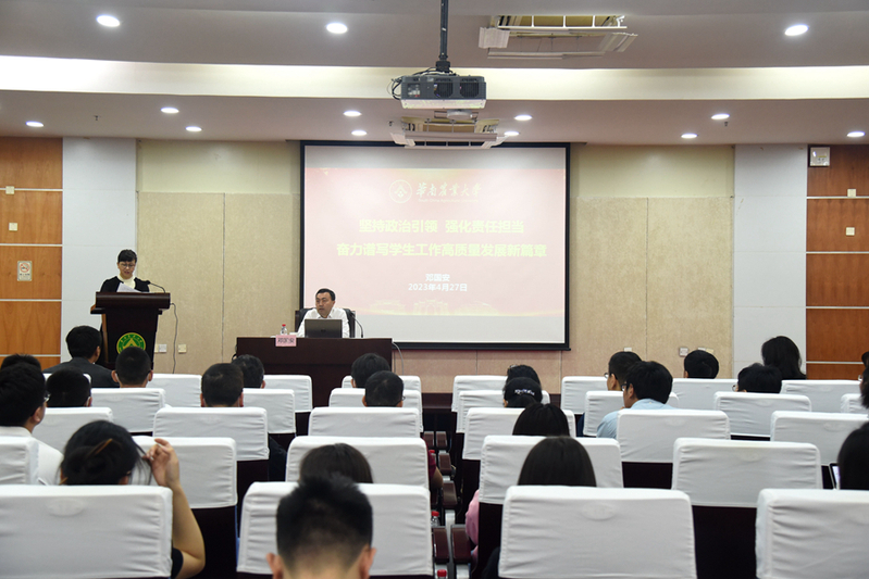 为深入开展学习贯彻习近平新时代中国特色社会主义思想主题教育,4月27日上午,校党委副书记邓国安在行政楼三楼报告厅为我校学生工作队伍讲授题为“坚持政治引领,强化责任担当,奋力谱写学生工作高质量发展新篇章”的主题教育专题党课。