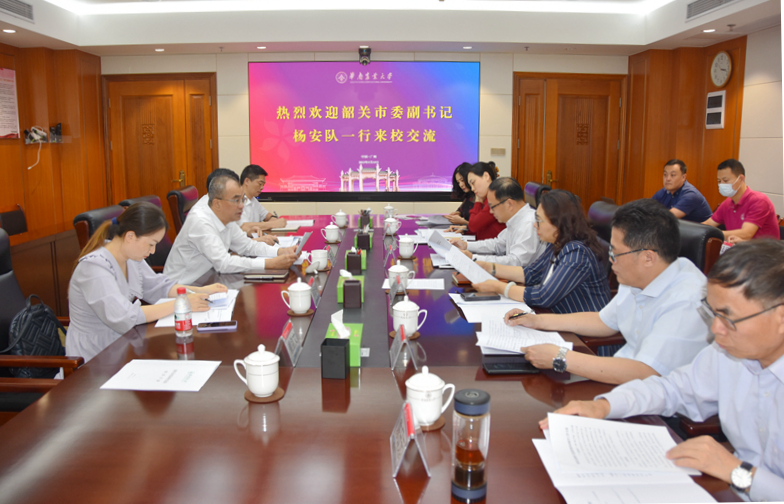 为深化校地合作,助力乡村振兴,5月15日,韶关市委副书记杨安队一行来校交流。副校长仇荣亮接待来宾并进行座谈。
