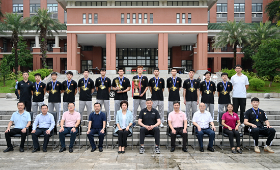 杜锋祝贺我校获得第25届中国大学生篮球二级联赛男子组全国总冠军,对我校篮球运动队的建设提出指导意见,并勉励男篮队员继续发扬敢于拼搏、团结奋斗的精神,用青春汗水打开成功大门。