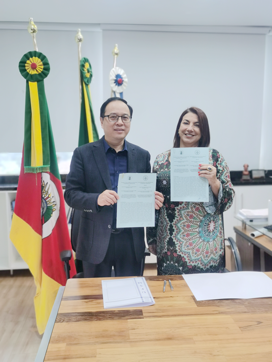 代表团还参访了巴西圣玛利亚联邦大学(Universidade Federal de Santa Maria, UFSM),受到了校方的热烈欢迎。该校副校长Martha Adaime高度评价两校的农业科教合作,表示非常荣幸能与我校开展密切合作。仇荣亮指出,两校都是传统农业大学,有很多共同的合作领域,同时前期已签署了两份合作协议,双方在可持续农业领域的合作空间很大。访问期间,双方签署了第三份校际合作协议,筹备了一年多的“中拉生物防控联合实验室”也在双方人员的见证下举行了成立仪式。该实验室将联合中拉双方的生物防控研究团队,开展联合培养研究生、科研攻关、技术培训及产业推广等多方面合作。