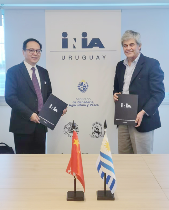 在参访乌拉圭国家农牧研究院(Instituto Nacional de Investigación Agropecuaria, INIA)期间,研究院院长José Bonica介绍了其与中国开展科研的合作内容,期待双方就共同感兴趣的领域开展合作,双方签署了框架合作协议。