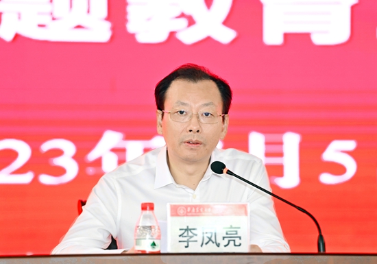 结合学校实际,李凤亮对进一步开展好主题教育提出五点意见:一是要持续加强组织领导,防止松懈情绪。学校主题教育办要加强工作调度,各二级党组织要扛起主体责任,各级党组织书记要认真履行第一责任人职责,确保主题教育各项工作扎实开展。二是要持续强化理论学习,在以学铸魂上下功夫。充分利用暑假时间组织广大党员干部深入开展理论学习,不断提升党员干部师生用党的创新理论指导实践的能力。三是要持续深化调查研究,在以学增智上下功夫。不断加强和改进调查研究工作,把学习成效转化为解决问题、促进工作、推动发展的强大动力,推动调研成果转化。四是要坚持推动高质量发展,在以学促干上下功夫。全面推进落实学校各项工作和重点任务,确保暑假期间学习不中断、教育不停步、工作不断档。五是要重点做好检视整改,在以学正风上下功夫。抓好处级以上领导干部检视问题清单的整改落实工作和专项整治工作,建立完善常态长效机制。