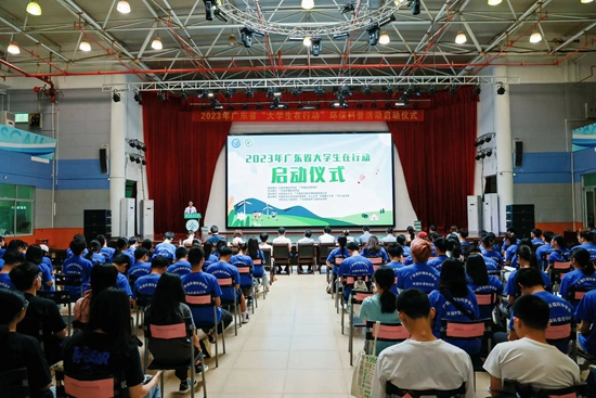 近日,由广东省环境科学学会主办、华南农业大学承办、华南农业大学资源环境学院协办的2023年广东省“大学生在行动”环保科普活动启动仪式在我校华山区新学生活动中心隆重举行。共青团广东省委兼职副书记王屹、广东省生态环境厅宣传教育与科技处副处长胡德庆以及来自中山大学、华南理工大学、华南农业大学、广东工业大学、仲恺农业工程学院、广东环境保护工程职业学院等师生代表出席活动。启动仪式由省环境科学学会秘书长邹耀主持。
