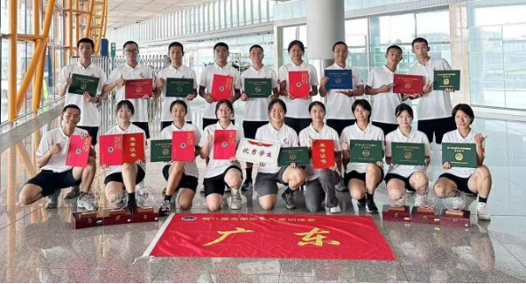 日前,第八届全国学生军事训练营在战略支援部队航天工程大学举行。本届军事训练营以“筑梦航天·点燃青春”为主题,共有来自全国31个省(自治区、直辖市)和新疆生产建设兵团的576名学生代表参加。我校派出的军训教官团成员王之派、曾嘉乐、杨晨曦、程怡静4名同学全部通过选拔,代表广东省出征训练营。经过14天的军事训练和紧张激烈的角逐,广东代表队(包括大学生8名、高中生10名)荣获全国总成绩第三名。曾嘉乐、杨晨曦同学获得作风优良称号,王之派同学带领全体学生在长城上宣誓。