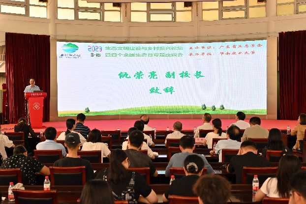 仇荣亮代表学校对参会代表表示欢迎,对论坛的成功举行表示祝贺,并向与会代表介绍了我校在生态学、环境科学等领域的发展历史和研究基础,表示学校将继续为我国生态文明建设和乡村振兴等方面的科技创新、人才培养和社会服务作出新贡献。