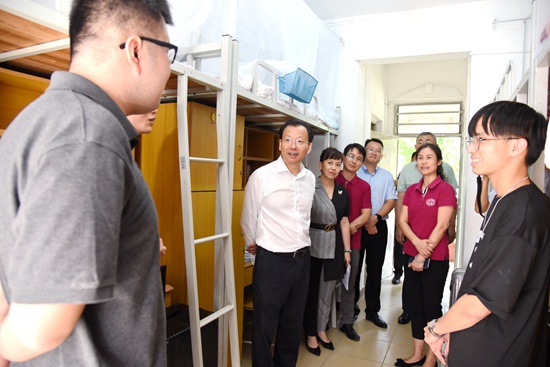新生报到期间,校党委书记李凤亮带队现场检查工作,慰问一线工作人员及学生志愿者。副校长杨运东陪同检查。