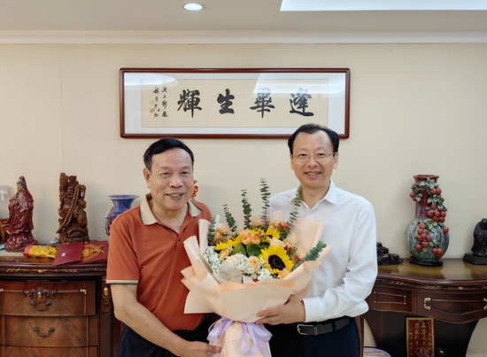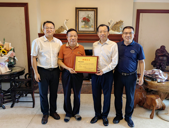 教师节前夕,校党委书记李凤亮专程来到我校教育发展基金会理事长毕英佐教授家中,向他致以节日的慰问,并为其颁授捐赠纪念牌,感谢他长期以来对学校教育事业发展的关心支持。