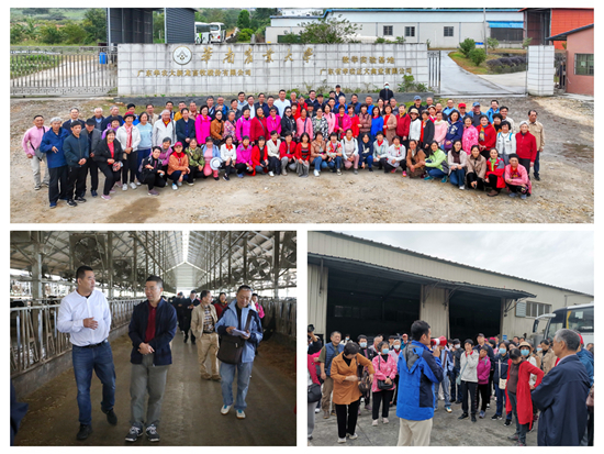在清远市佛冈区,老同志们参观了我校实习基地“广东华农大新龙畜牧股份有限公司奶牛场”,了解公司的生产经营情况,对“华农酸奶”的原料来源有了更直观的认识,对学校品牌更感自豪。