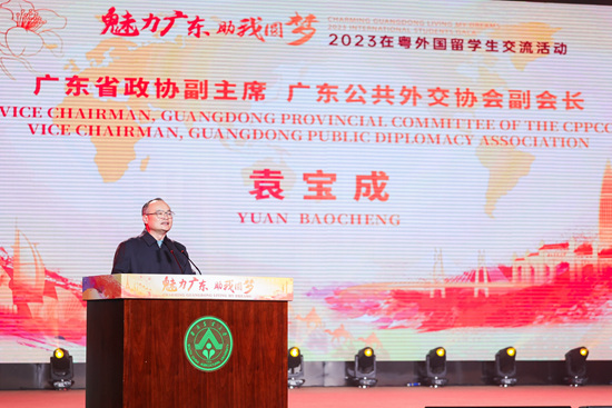 袁宝成表示,2023年是共建“一带一路”倡议提出10周年,广东作为改革开放的排头兵、先行地、实验区,一直深度参与“一带一路”建设,必将为中外交流合作提供更多机遇。他希望在粤留学生们在学习深造的过程中增进对中国和广东的了解,收获知识、友谊和成长,以实际行动为推动“一带一路”建设和构建人类命运共同体贡献青春力量。