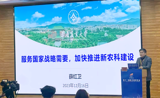 12月16日,由广东省教育厅指导、广东省教育研究院主办的第十一届南方教育年会在广东外语外贸大学白云山校区召开,近20位来自全国的知名专家学者围绕“新征程新使命:教育强国战略的内涵、路径和实践”主题,为广东建设教育强省把脉问诊、出谋划策。华南农业大学校长薛红卫受邀出席大会,并作“服务国家战略需要,加快推进新农科建设”专题报告。