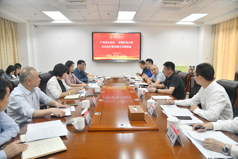 从化区政府办、农业农村局、鳌头镇、现代农业投资集团相关负责人,我校科学研究院、乡村振兴与社会服务处相关负责人参加会议。