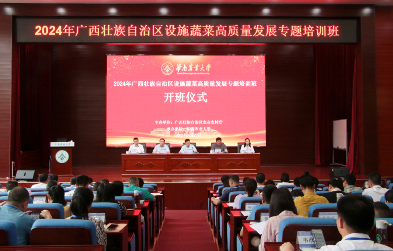 4月27日上午,由广西壮族自治区农业农村厅主办,我校承办的2024年广西壮族自治区设施蔬菜高质量发展专题培训班在我校开班。广西壮族自治区农业农村厅党组成员、副厅长韦波,副校长咸春龙出席开班仪式并致辞。