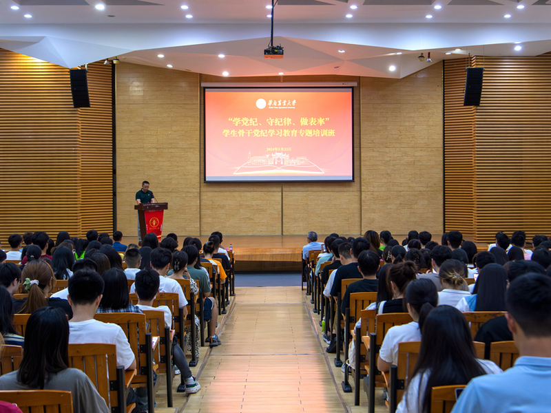 培训班围绕党纪学习教育、网络素养提升、校纪校规教育等专题内容分三场进行。首场专题培训邀请了华南师范大学马克思主义学院周建伟教授以《把党的纪律印于心、践于行》为题为培训班学员授课,他围绕政治、组织、廉洁、群众、工作和生活等党的六大纪律,结合学生学习生活实际,以鲜活详实的案例和数据详细阐释了党的纪律的主要内容。在随后的两场专题培训中,党委学生工作部(党委研究生工作部)有关科室同志以《提升网络素养,传播正向能力,争做时代新人》和《遵守校规校纪,弘扬优良学风》为题进行授课。