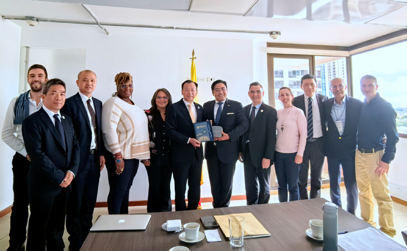 在哥伦比亚访问期间,代表团分别访问了哥伦比亚国立大学、国家水稻联合会、托利马大学,并到访哥伦比亚农业部进行交流,达成合作意向。哥伦比亚国立大学副校长Olivia Lorena Chaparro、国家水稻联合会总经理Rafael Hernandez、托利马大学校长Omar Albeiro Mejia Patinoe及哥伦比亚农业部秘书长Byron Valdivieso热情接待代表团,就开展全方位多领域合作进行了深入探讨,表示将继续合力推进中拉联盟建设,并在此框架下进一步做好中哥水稻联合中心的务实交流与合作。李凤亮一行还在驻哥伦比亚使馆文化处一等秘书袁菊花陪同下拜会了驻哥伦比亚使馆朱京阳大使,感谢使馆在我校与哥伦比亚合作单位的交流中给予的指导和支持。
